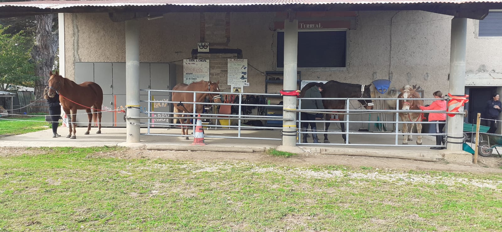 aire de pansage couverte, d’une douche pour chevaux et d’une sellerie dédiée aux