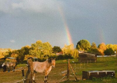Offrez à votre cheval une pension adaptée à ses besoins, avec foin à volonté, vie en petits troupeaux harmonieux et une approche centrée sur le bien-être au naturel.